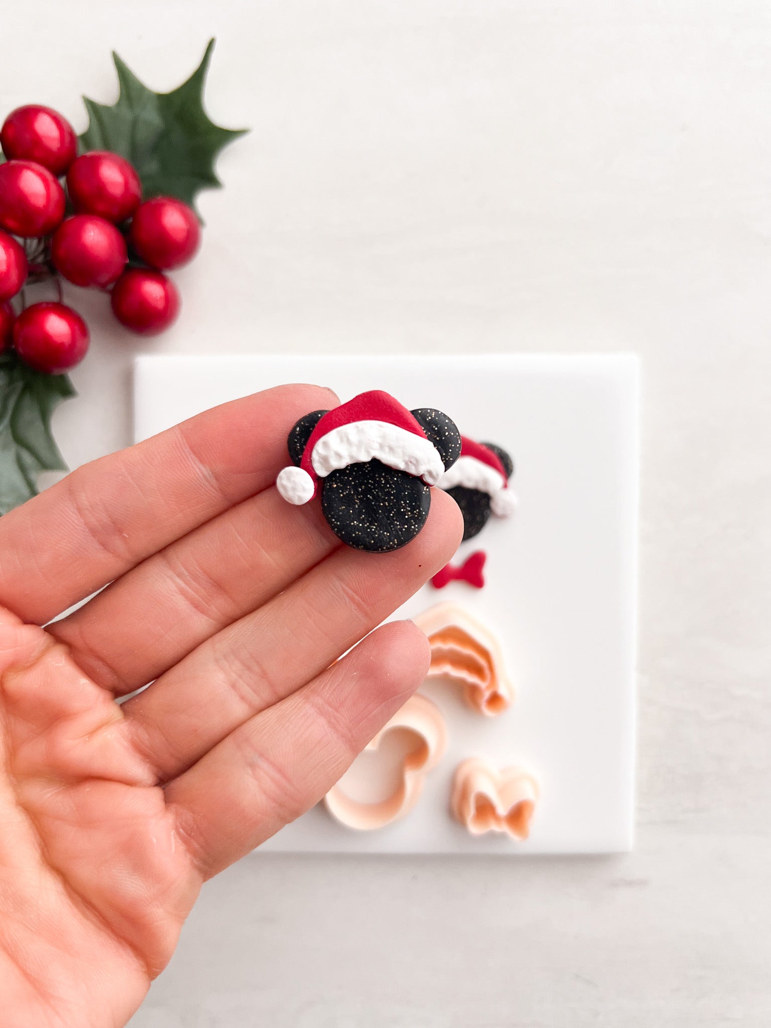 Santa Mickey Clay Cutter | Santa Mickey Polymer Clay Cutter for DIY Christmas Earrings Disney-Themed Jewelry and Handmade Holiday Accessories
